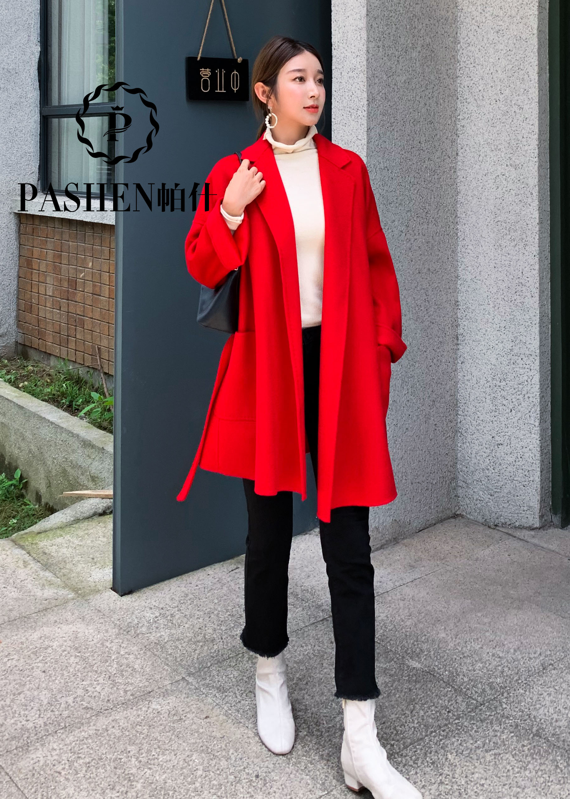 双面羊绒水波纹大衣23202大红