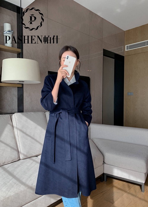 双面山羊绒水波纹大衣180藏青
