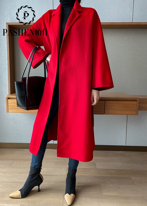 双面山羊绒水波纹大衣182红色
